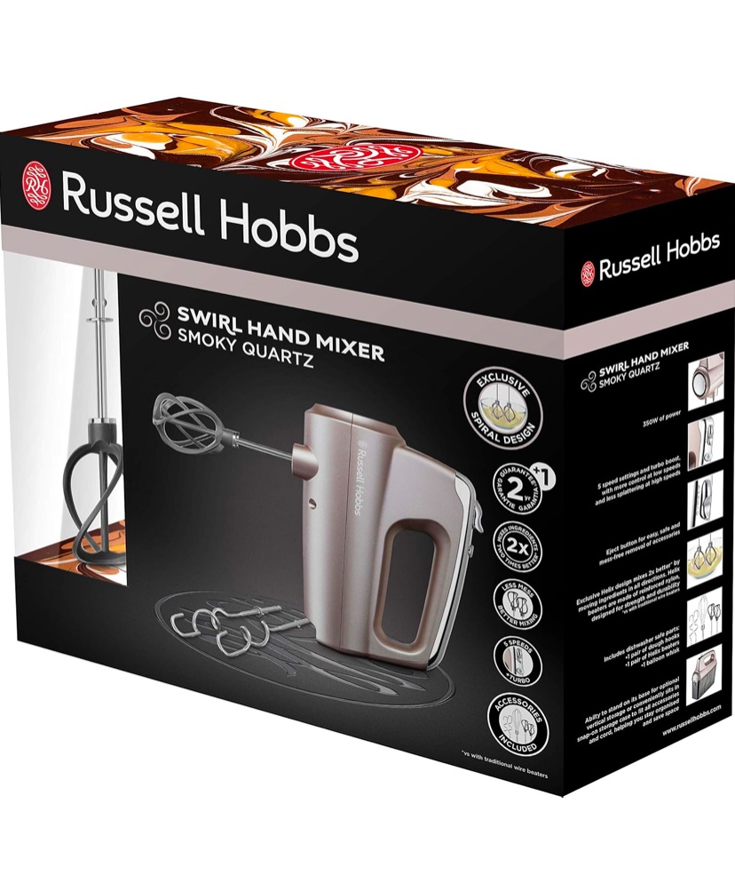 Russell Hobbs 25891-56 Batteur Mixeur Swirl, 5 Vitesses, Fonction Turbo, 1 Paire De Batteurs Hélice, Pétrin, Fouets – Turquois
